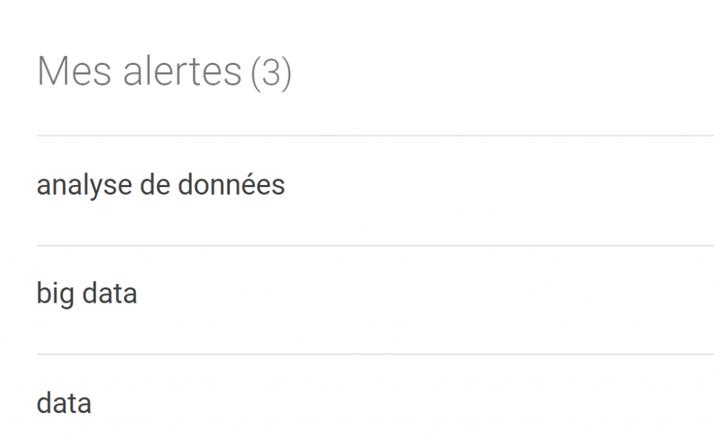 Pour rester informé sur l'actualité de la Big Data, j'ai mis en place des alertes Google. Chaque fois qu'un nouvel article ou contenu est publié contenant des mots-clés comme "data", "Big Data" et "analyse de données", je reçois un email. Cela me permet de suivre facilement les dernières tendances et innovations dans ce domaine passionnant.